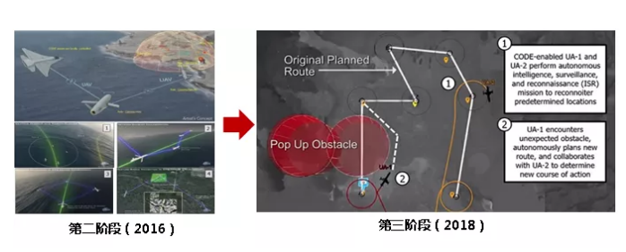 第三階段從2018年1月開(kāi)始,測(cè)試使用6架真實(shí)無(wú)人機(jī)以及模擬飛機(jī)的協(xié)同能力,實(shí)現(xiàn)單人指揮無(wú)人機(jī)小組完成復(fù)雜任務(wù)。