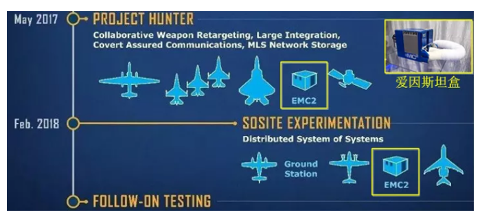在SoSITE項(xiàng)目的最新試驗(yàn)中,使用了臭鼬工廠開(kāi)發(fā)的復(fù)雜組織體開(kāi)放式系統(tǒng)架構(gòu)(E-OSA)任務(wù)計(jì)算機(jī)版本2(EMC2),即所謂的“愛(ài)因斯坦盒”,如圖7所示。洛克希德·馬丁公司開(kāi)發(fā)的E-OSA兼容了美空軍OMS標(biāo)準(zhǔn)。“愛(ài)因斯坦盒”可為系統(tǒng)之間的通信提供了安全保護(hù)功能,在將相關(guān)能力部署到操作系統(tǒng)之前,“愛(ài)因斯坦盒”能夠確保快速而安全的實(shí)驗(yàn)。“愛(ài)因斯坦盒”不僅是一個(gè)通信網(wǎng)關(guān),它可被比作一部智能手機(jī),能夠運(yùn)行很多不同的應(yīng)用程序,具備實(shí)現(xiàn)動(dòng)態(tài)任務(wù)規(guī)劃、ISR以及電子戰(zhàn)的能力。
